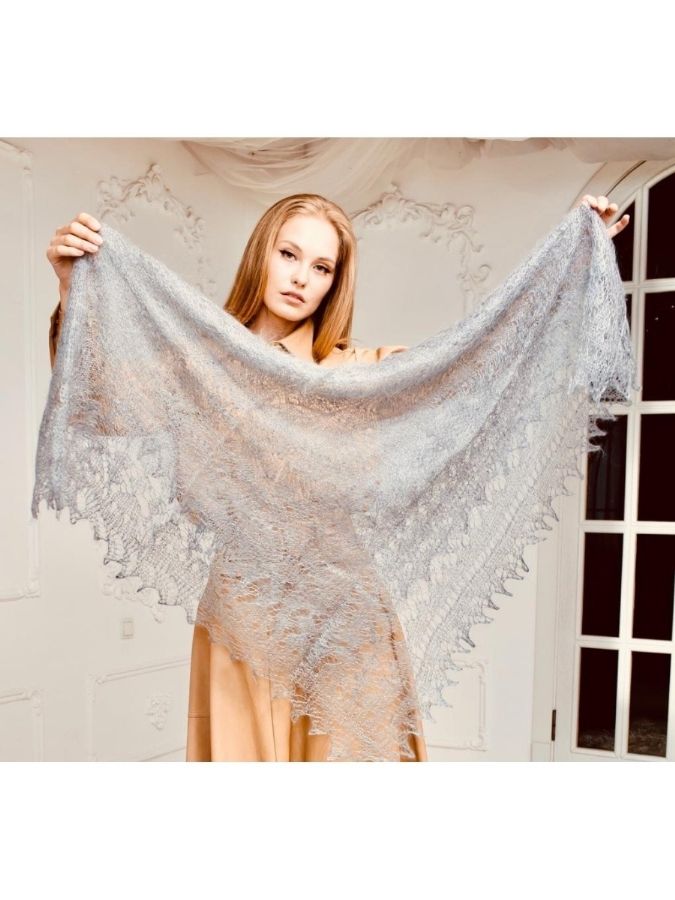 The Grey Haze Down Handkerchief is an exquisite beauty and a match to the high canons. It is the cobweb that is passed through the wedding ring to prove high-quality puffing. Openwork and light cobwebs have an ornamental pattern throughout the entire area of the product. This is an incredible work of our knitting craftswomen in beauty and sophistication. The soft down web keeps you warm perfectly.